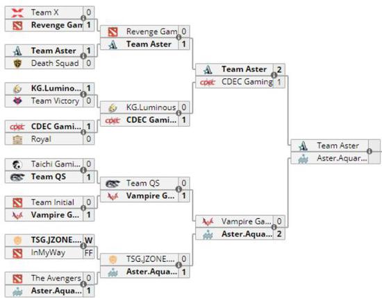 上半区的另一个四强名额被Aster.Aquarius收入囊中,这支Aster的青训队在第二轮拿下了实力不错的TSG,并于八强之战中打败Vampire与主队会师半决赛。