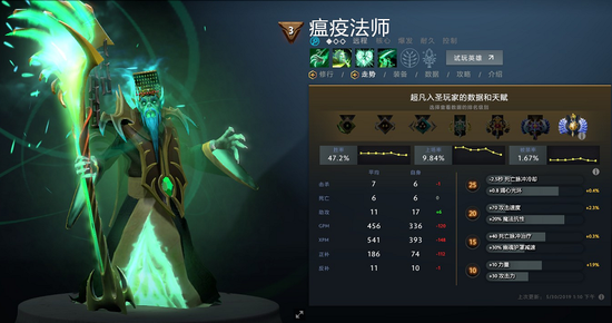 (此数据来源DOTABUFF,仅供参考)不断以来,瘟疫法师的“竭心光环”都是一个相当强力的输出技艺,固然伤害效果并不直观,但是提供的输出总量却是相当高的。而在伤害类型修正后,这一技艺提供的伤害直接降低了四分之一(依照英雄根底魔抗25%计算),对这样一位团队航母来说,影响还是相当明显的。