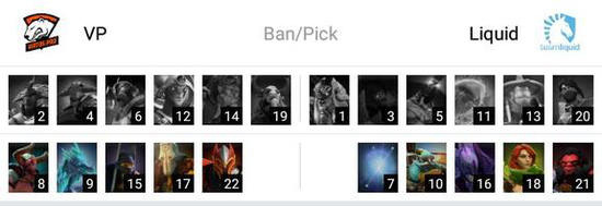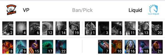 盲目成功无望的VP打出GG,666更是直接分开了游戏,23分钟一波Roshan团的失利让VP直接放弃了本局竞赛,Liquid拿下第一局。