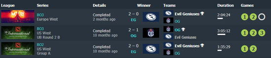 在昨天的小组赛上,LGD和OG完成了时隔301天的再次对决,短少了大爹的OG被LGD两盘暴打,跌入败者组。而今天,OG又一次遇上了本人宿命中的敌人——EG。