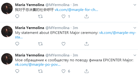 而方才,这位女掌管在个人推特上用三种言语对震中杯Major决赛后的采访及MVP颁奖环节做出理解释。