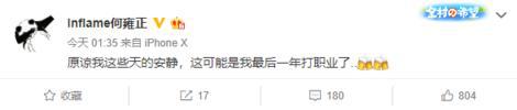 电竞频道:Inflame微博或许将再次复出征战职业赛程