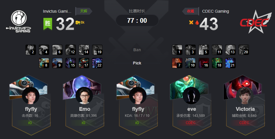祝贺IG战队以3-2的总比分击败CDEC,胜利升级ESLOne汉堡站。