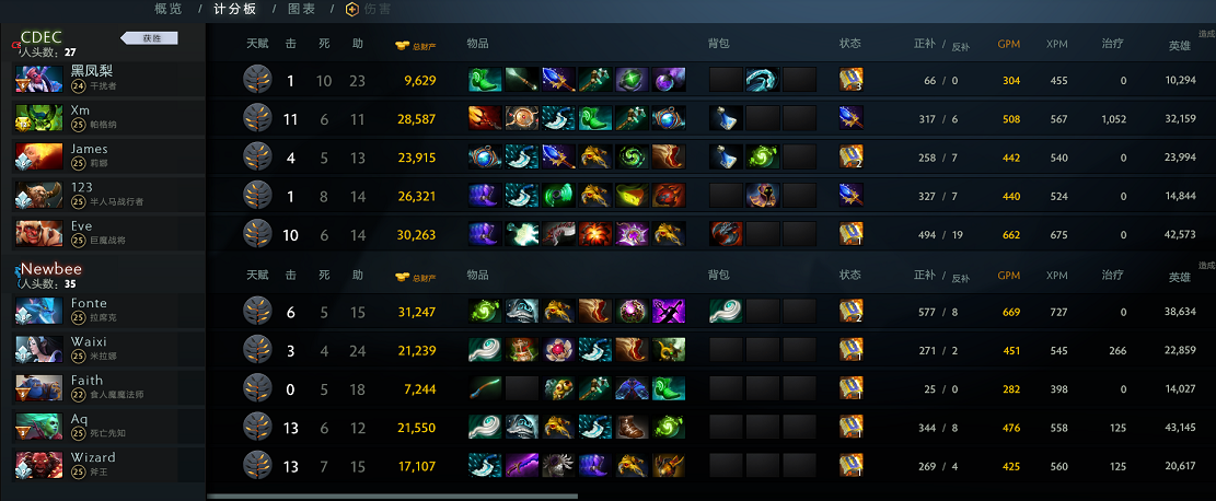 首场竞赛NB点出了双法核的推进体系,CDEC这边则是巨魔人马的团战节拍阵容。双方在前中期的交锋非常频繁,两边的GANK表现都非常不错。固然NB一路推进并没有什么障碍但是CDEC针对性点出的骨法还是阻拦到了NB的推进节拍,两边就此开端了很长一段时间的攻坚战,最终CDEC还是凭借团战上面的技艺配合略胜一筹顺利拿下第一局。