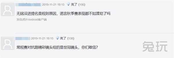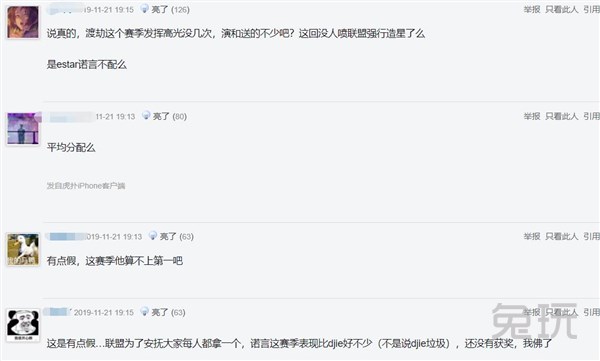 也有网友谈到Djie这个赛季发挥高光时刻没几次,相比之下诺言的表现要比Djie好上不少,这都没获奖,是诺言不配吗?甚至有网友质疑是不是为了平均分配,毕竟E星有两位选手获奖了。