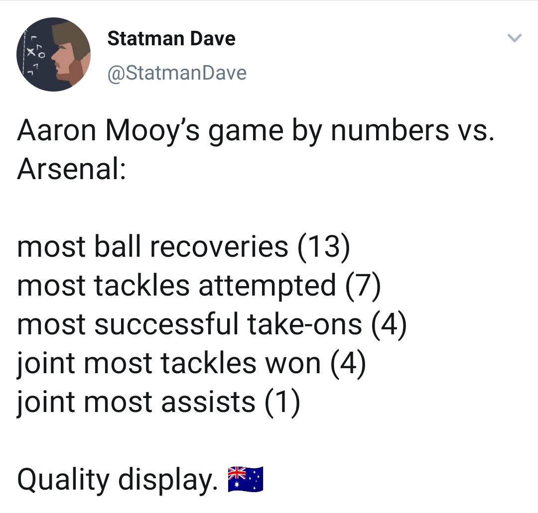 在北京时间今天凌晨结束的英超第15轮的一场较量中,布莱顿客场2-1战胜阿森纳。本场比赛,布莱顿中场阿隆-穆伊发挥出色,多项数据领跑全场。