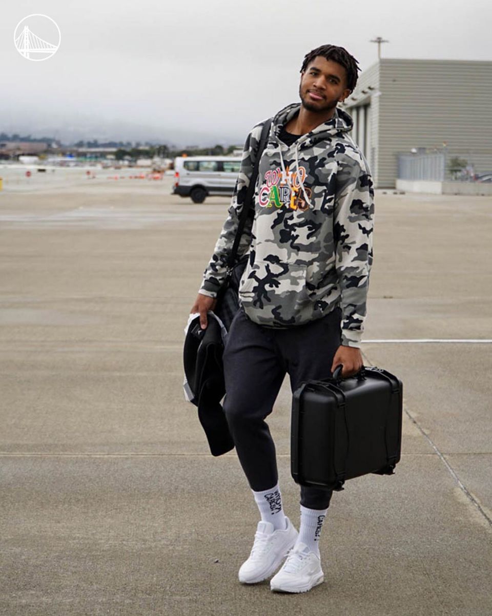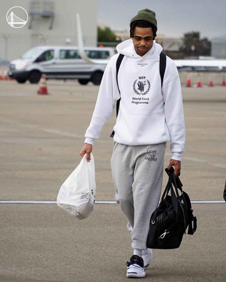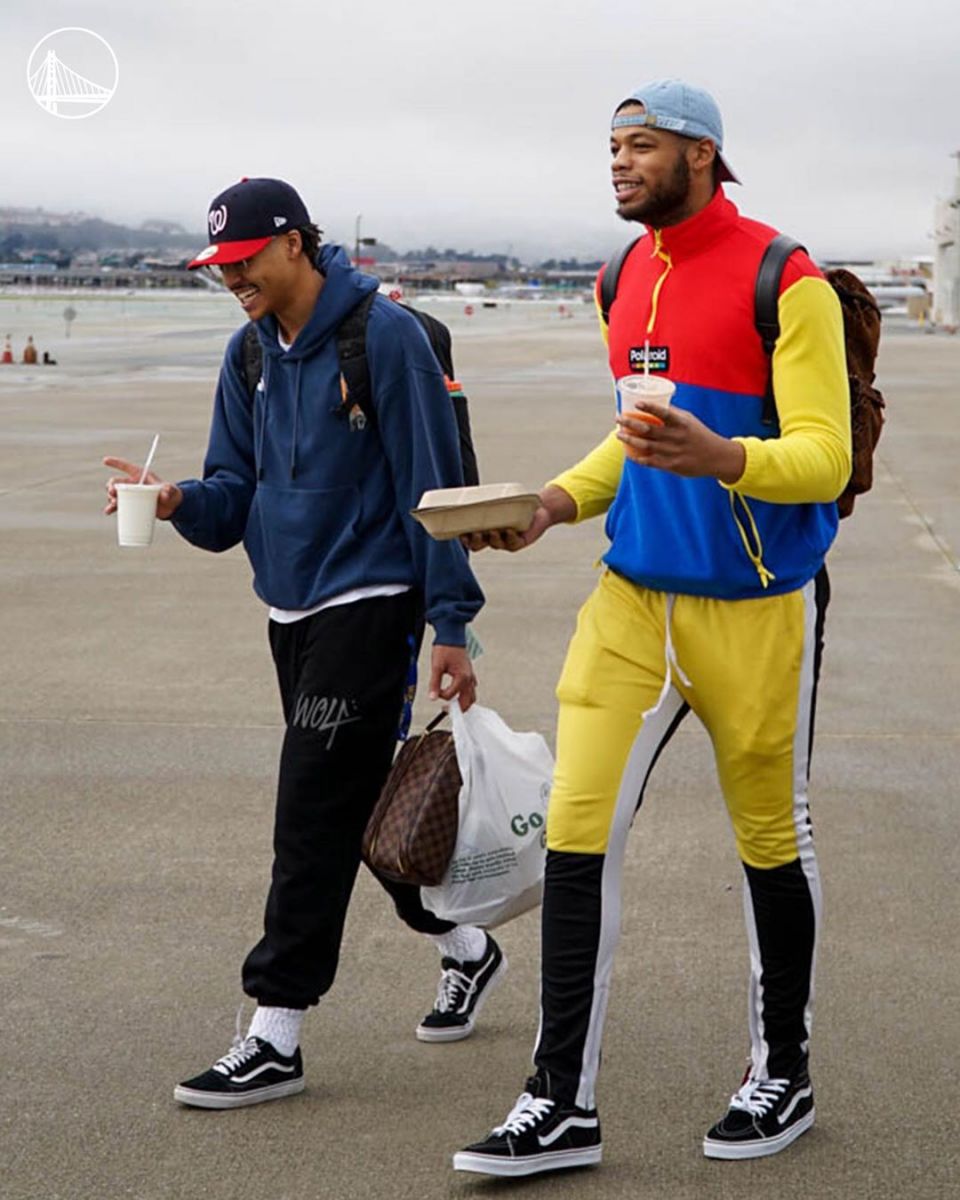今天,勇士队在官方社交媒体上发布了一组球员出发前往客场的照片。(见新闻配图)