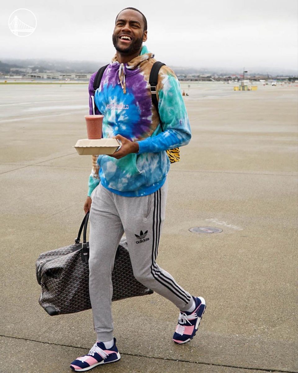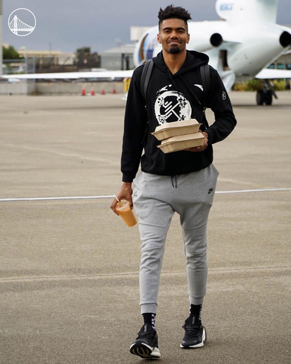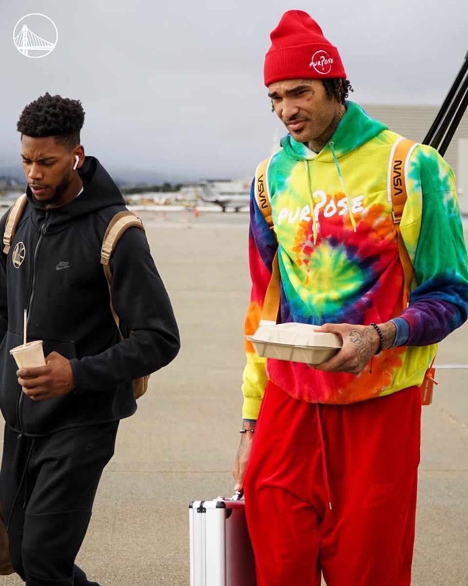 今天,勇士队在官方社交媒体上发布了一组球员出发前往客场的照片。(见新闻配图)