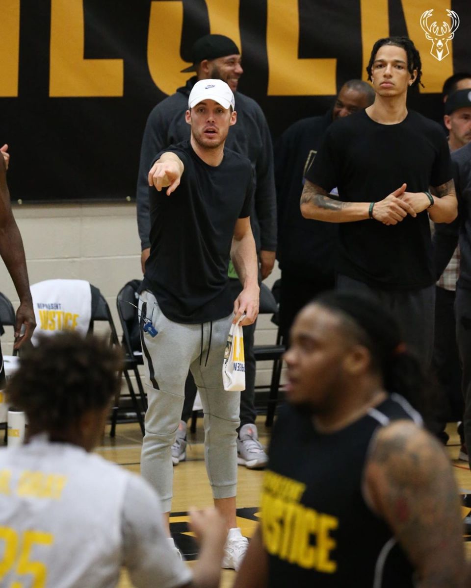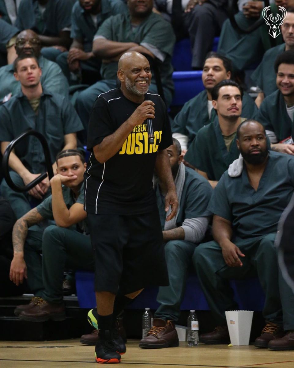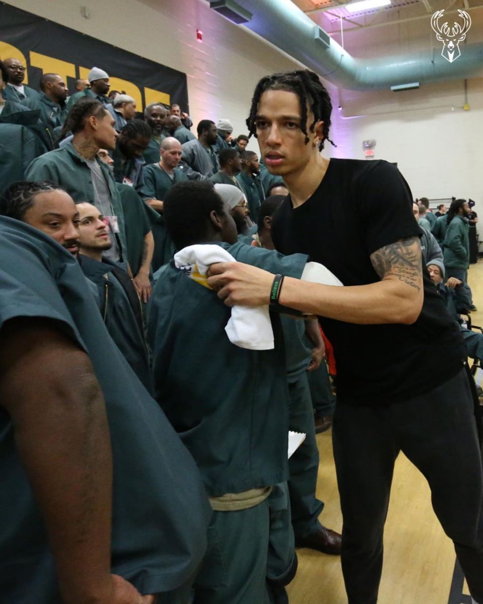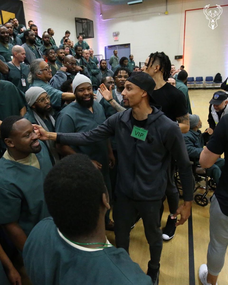 今天,雄鹿队球员和教练参加关爱活动,跟当地社区一起给服刑人员组织了一场篮球比赛。