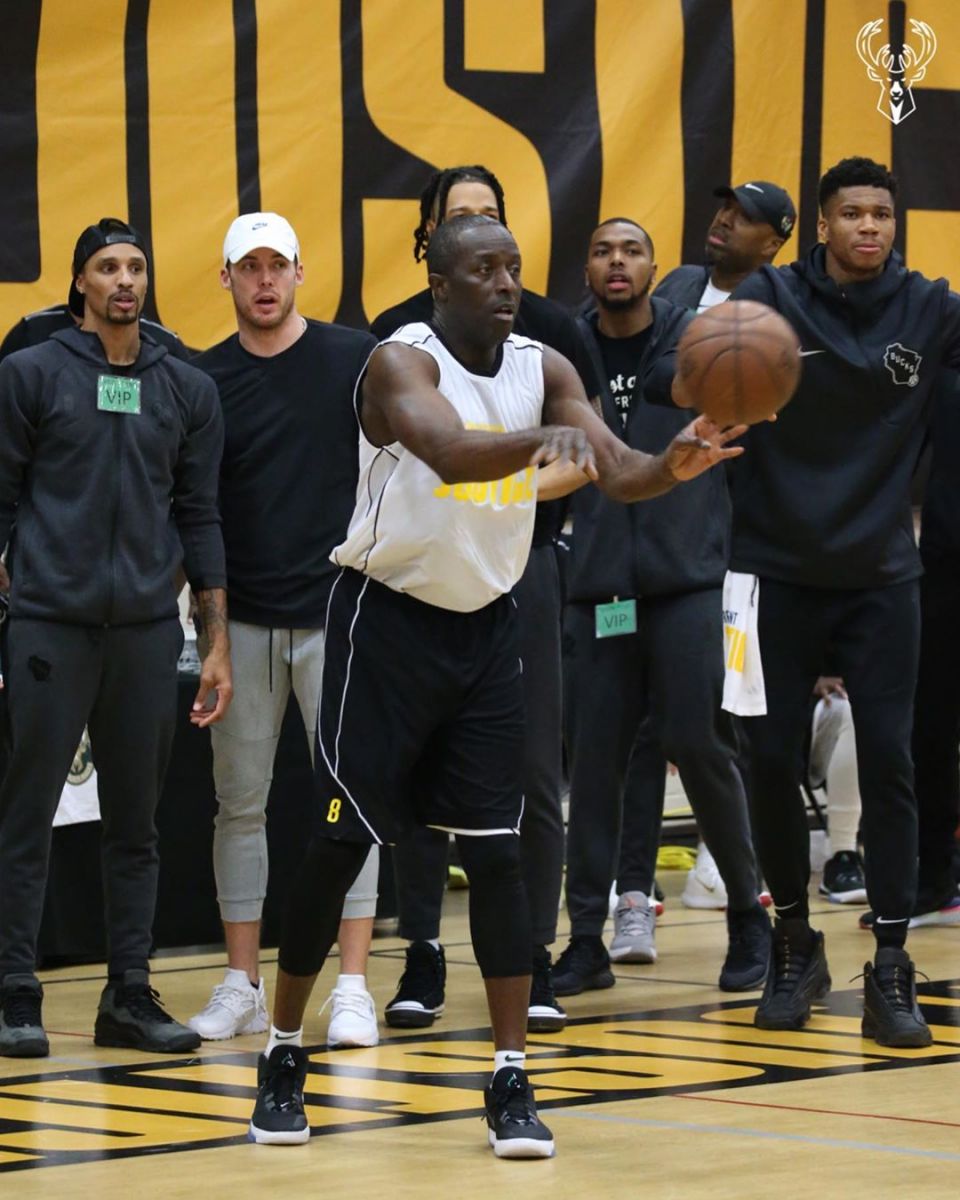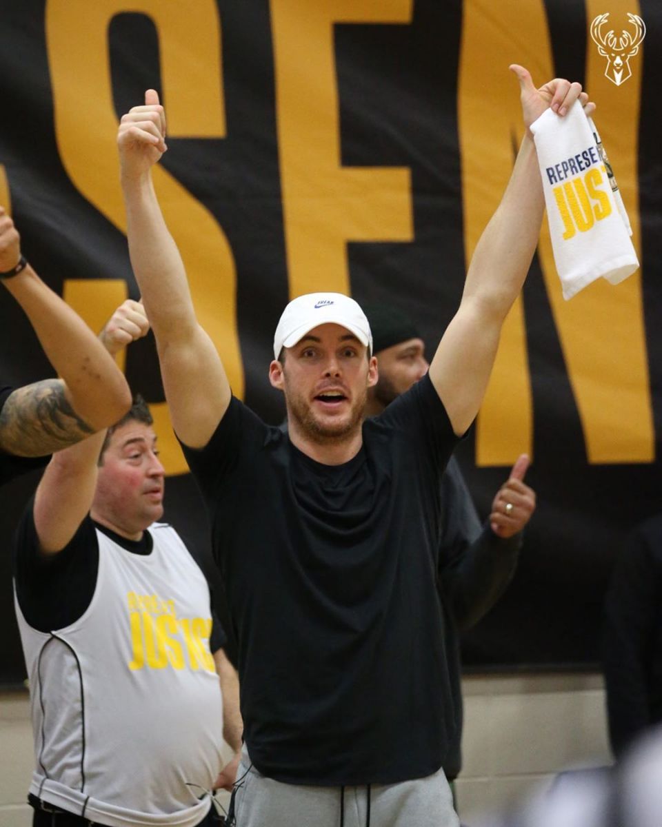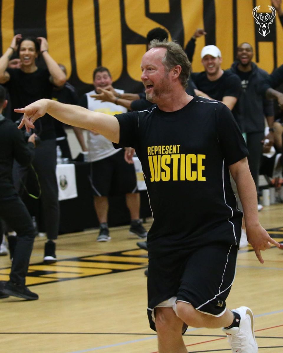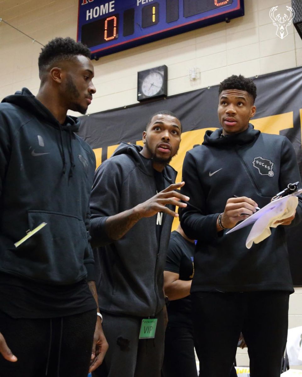 今天,雄鹿队球员和教练参加关爱活动,跟当地社区一起给服刑人员组织了一场篮球比赛。