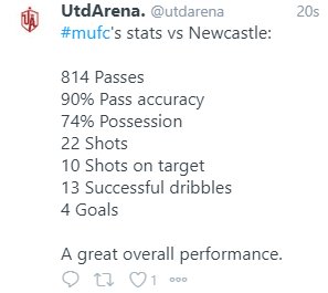 英超第19轮 曼联主场迎战纽卡斯尔。曼联此役在数据方面,取得了无可置疑的领先优势。根据赛后的数据统计,曼联的大胜并不是出于偶然,多项数据的绝对优势,让他们在场上有了更多机会,通过盘带和传导创造多个破门良机。