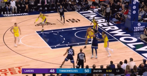 森林狼在第二节比赛的一次进攻就充分说明了唐斯在内线给湖人带来的威慑作用。在为杰夫-蒂格掩护后,唐斯到内线要球,蒂格把球分给他,唐斯一得球准备进攻,湖人就对他采取包夹,这时蒂格被完全放空,唐斯把球回传给蒂格,后者轻松上篮得分。