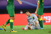 11月2日讯北京国安门将侯森上半场发挥出色,但被打进一粒点球之后,他的反应被转播镜头捕捉到。被进点球的反应。两分钟前扑出...