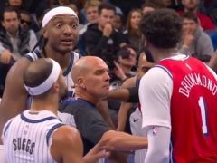 火爆!76人魔术大规模冲突6T+1驱逐 庄神坏笑+萨格斯黯然离场 北京时间11月26日,NBA杯76人主场对阵魔术的比赛,在第二节比赛德拉蒙德与卡特肢体冲突对骂...