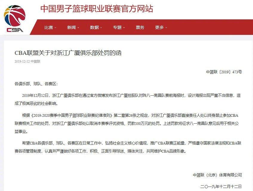 北京时间12月12日,CBA浙江广厦俱乐部在社交媒体平台上所发布的一张海报迅速引起了广大网友的讨论。很显然,广厦队所发布的这张照片出现了非常严重的不当信息,而这也引起了很多球迷们的质疑。果然在不久后,CBA官方发出通