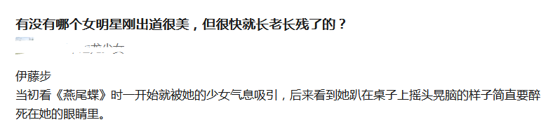 回头看看伊藤步,那个《燕尾蝶》里纯真无暇的少女与如今屏幕里的她似乎是两个世界的人,说来真的是太令人可惜了。