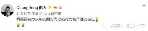 当时,赵睿曾经更新社交媒体回怼抨击自己的网友们:“我需要努力成熟的面对无心的行为和严谨的各位”并配了三个“跪了”的表情。不久之后,赵睿删除了这条消息,但是遭到了更多球迷的谩骂。