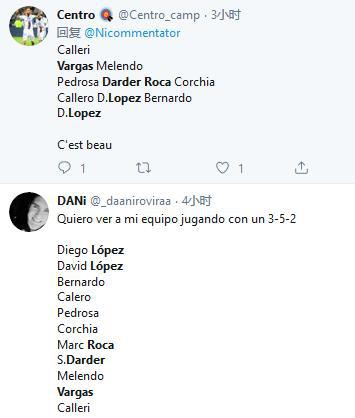 在加耶戈下课、马钦上任后,西班牙人球迷纷纷根据马钦的喜好排起了球队新的首发阵容。